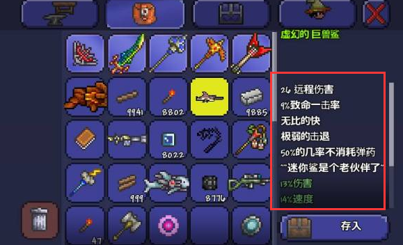 打機械骷髏王推薦武器:巨獸鯊 魔晶彈,有靈液的話建議用靈液箭加破防debuff,debuff消失之後補一箭再切巨獸鯊。防具可以佩戴神聖套,如果神聖錠不夠用精金/鈦金套也可以。配飾可以選擇克盾 翅膀 遊俠徽章 任意馬掌氣球 鈷盾,其他任意,克盾和馬掌氣球是為了提供快速位移,方便走位和操作。