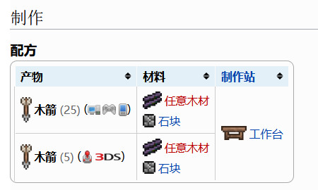 泰拉瑞亞箭矢用一個石塊和任意的一個木材在有工作台的地方進行合成的。木材只需要砍樹就能夠獲得石塊,玩家需要用鎬子去挖,工作台也是用木材進行製作的。箭矢在遊戲當中是作為彈葯的,可以在商人處以5個銅幣的價格購買,也可以在夜晚打殭屍掉落。