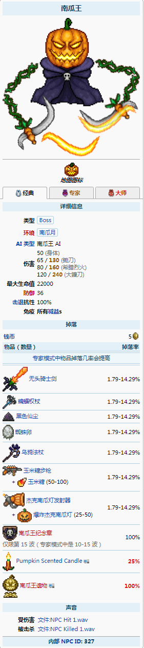 首頁 泰拉瑞亞 問答 泰拉瑞亞血蝙蝠法杖怎麼獲得? 2022-10-10 泰拉瑞亞血蝙蝠法杖(蝙蝠權杖)是困難模式,世紀之花後的武器,獲得方法是在南瓜月事件期間由南瓜王掉落,掉率為1.79-14.29%。使用蝙蝠權杖,每次會發射1~3枚自動開火的追蹤蝙蝠射彈。南瓜王掉落物如下: