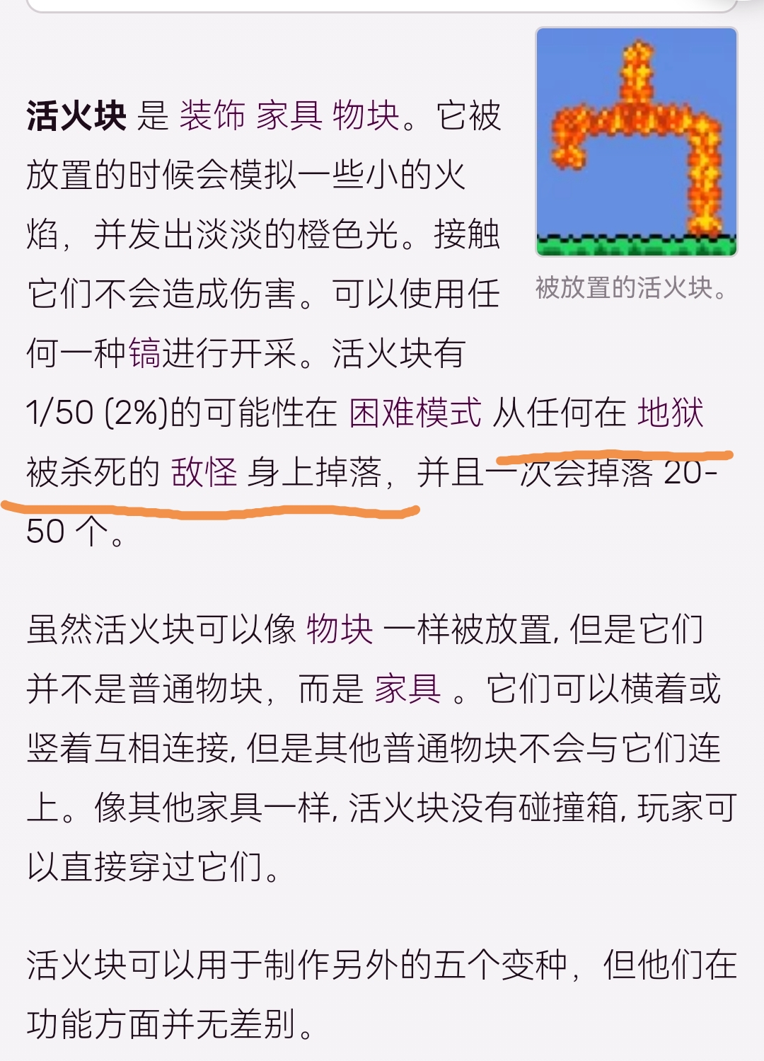 首頁 泰拉瑞亞 問答 泰拉瑞亞活火塊怎麼獲得? 2022-10-10 活火塊是在地獄當中打敗任何敵怪都有可能獲得的,並且他一次性會掉落20~50個活火塊,它是一種建築類物品,並且是沒有實體的,只能在困難模式後獲得。