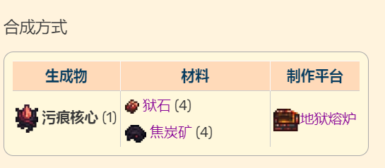 首頁 泰拉瑞亞 問答 泰拉瑞亞災厄污痕核心怎麼獲得? 2022-10-10 污痕核心是一個困難模式的製作材料,它被用於製作一些武器、血禍古符、硫火套裝和一些傢具。污痕核心由獄石、焦炭礦在地獄熔爐製作可得。