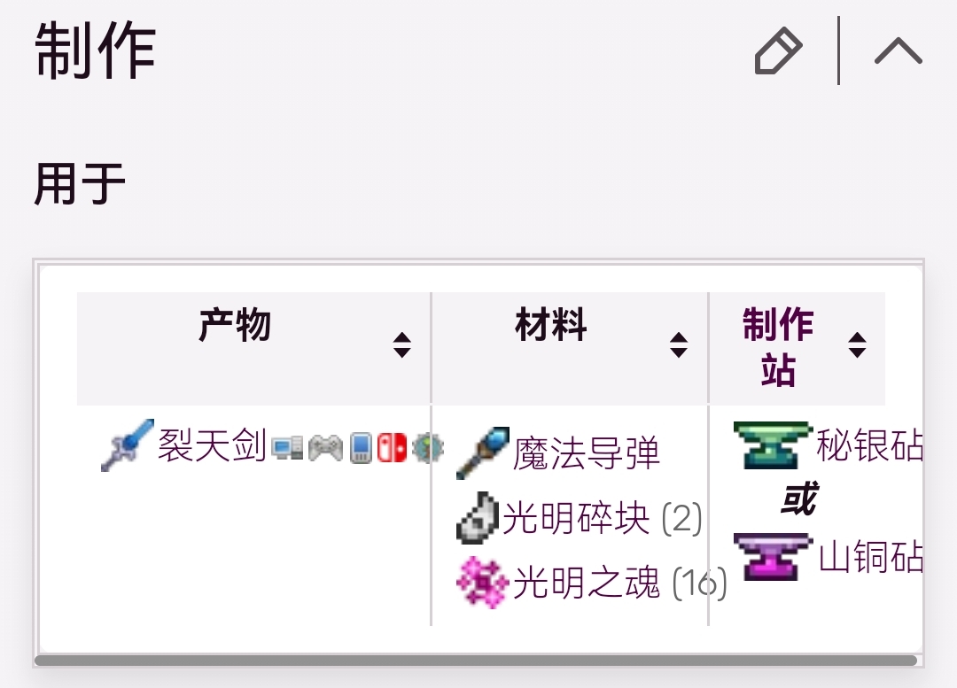 首頁 泰拉瑞亞 問答 泰拉瑞亞魔法導彈可以合成什麼? 2022-10-10 魔法導彈是一種魔法武器,出現在地牢中的鎖住的金箱中,它可以合成裂天劍,裂天劍是困難模式的魔法武器。當使用時,它會迅速從玩家身後召喚三個瞄準游標所在的位置的能量劍。