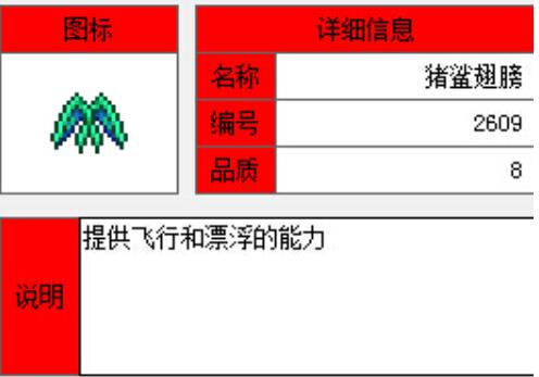 3、第三名,豬鯊之翼,143格(全程沾水時194格)。豬鯊之翼是泰拉瑞亞中最重要的物品之一, 豬鯊之翼是現在版本中飛行高度最高的翅膀,在水中有加成,掉落幾率較低
