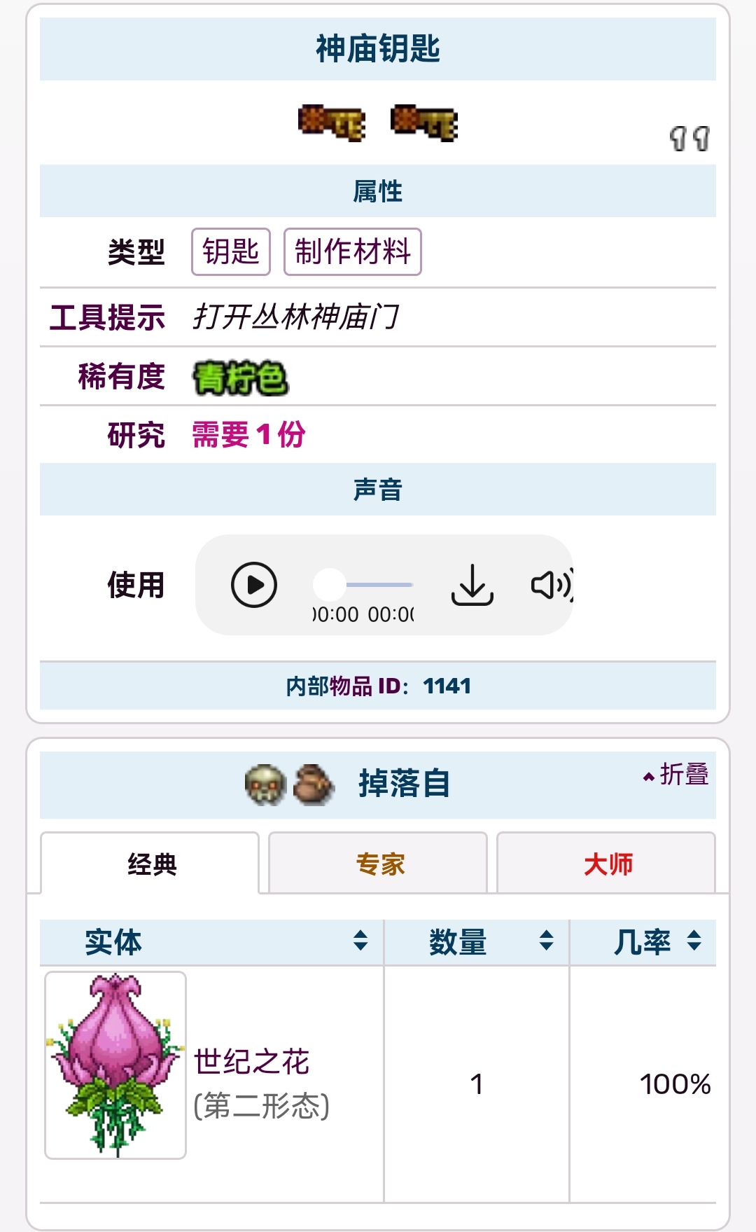 首頁 泰拉瑞亞 問答 泰拉瑞亞神廟鑰匙怎麼得到? 2022-10-11 叢林神廟鑰匙是擊敗世紀之花後獲得的。叢林神廟鑰匙的獲得概率是100%,玩家只需要擊敗世紀之花後,就可以獲得叢林神廟鑰匙,去打開叢林神廟的門,叢林神廟裡面的boss是石巨人玩家,擊敗他之後就可以去地牢找邪教徒了。