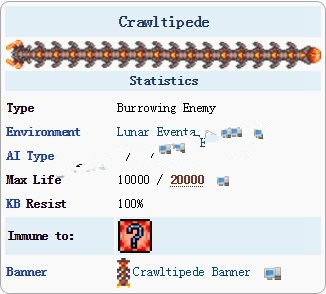 1、蜈蚣只會攻擊離地面8格及以上的玩家,會完成無視呆在地面上的玩家。玩家對於尾巴造成的傷害是打其他普通怪物傷害的10倍,這是因為蜈蚣只有尾巴是可以攻擊的點。