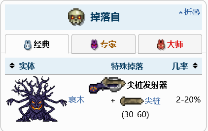 首頁 泰拉瑞亞 問答 泰拉瑞亞尖樁發射器怎麼獲得? 2022-10-12 尖樁發射器在南瓜月事件中由哀木掉落,並總會同時掉落 30 至 60 個尖樁。它們的掉落率基於波次而定,第 4 波開始時為 2%,於第 15 波期間達到最高的 20%。