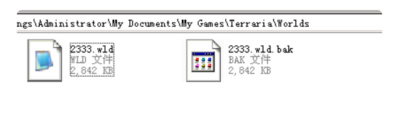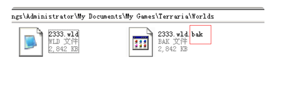 六、然後想要找回原來的世界 只要把BAK後綴的那個文件的BAK後綴刪除 然後覆蓋前面的那個文件就好瞭然後回遊戲你的世界就回來了,如下圖所示把紅圈裡的bak刪除