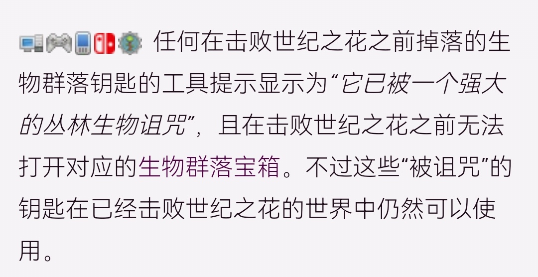 首頁 泰拉瑞亞 問答 泰拉瑞亞叢林鑰匙為什麼不能開寶箱? 2022-10-13 叢林鑰匙是通過打敗叢林生物群落的敵怪獲得的,只要在困難模式之後打敗生物群落的迪怪,就都有可能獲得鑰匙,它的概率是1/2500,它並不是不能開寶箱,而是它必須要等到你打敗世紀之花之後才能夠開寶箱。