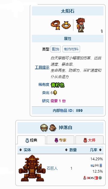 泰拉瑞亞中,日曜石就是太陽石,掉落自石巨人,能夠在白天給玩家提供增益,如果玩家想要獲得日曜石,需要在神廟里擊敗石巨人,有幾率掉落。