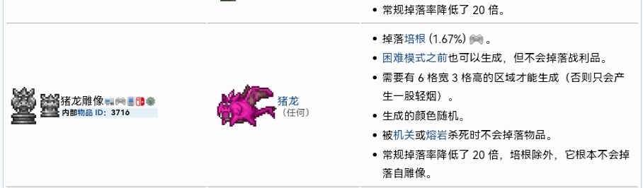首頁 泰拉瑞亞 問答 泰拉瑞亞豬龍雕像有什麼用? 2022-10-14 豬龍雕像連接上開關和電線之後,它就可以生成豬龍。它可以掉落物品,培根掉落的概率是1.67%,它本身是困難模式的一種敵怪,是前期比較厲害的敵怪,還有隱身的能力。用雕像生成的豬龍,必須用武器打死才有可能掉落東西。