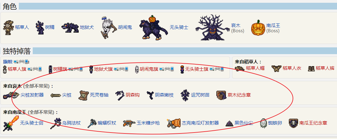 南瓜月是萬聖夜主題事件,掉落物品:落幽靈木、詛咒樹苗、黑色精靈塵、蜘蛛卵、南瓜劍、蝙蝠法杖、糖豆機槍、黑鴉法杖等等,具體如下: