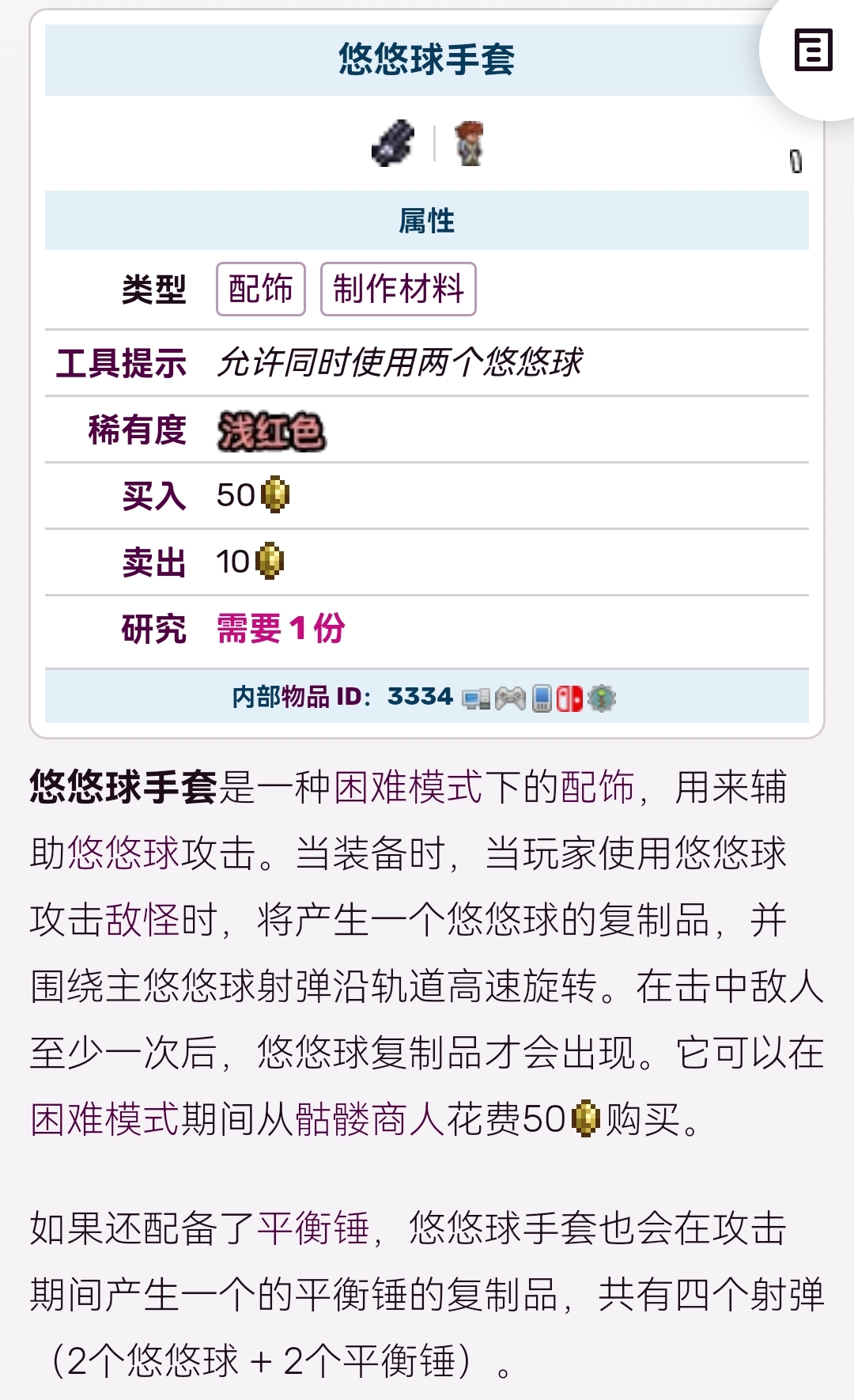 首頁 泰拉瑞亞 問答 泰拉瑞亞怎麼控制兩個悠悠球? 2022-10-15 在泰拉瑞亞當中,如果想控制兩個悠悠球,那麼你需要裝備悠悠球手套,它是困難模式下的一種配飾,它的作用就是能夠讓你控制兩個悠悠球,不過他是通過復制出一個一模一樣的悠悠球,達到控制兩個的效果。