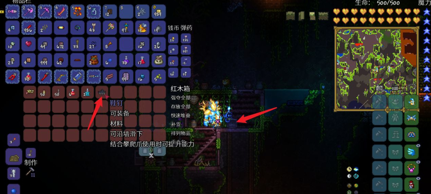 2、在地下叢林開啟紅木寶箱有概率找到鞋釘。