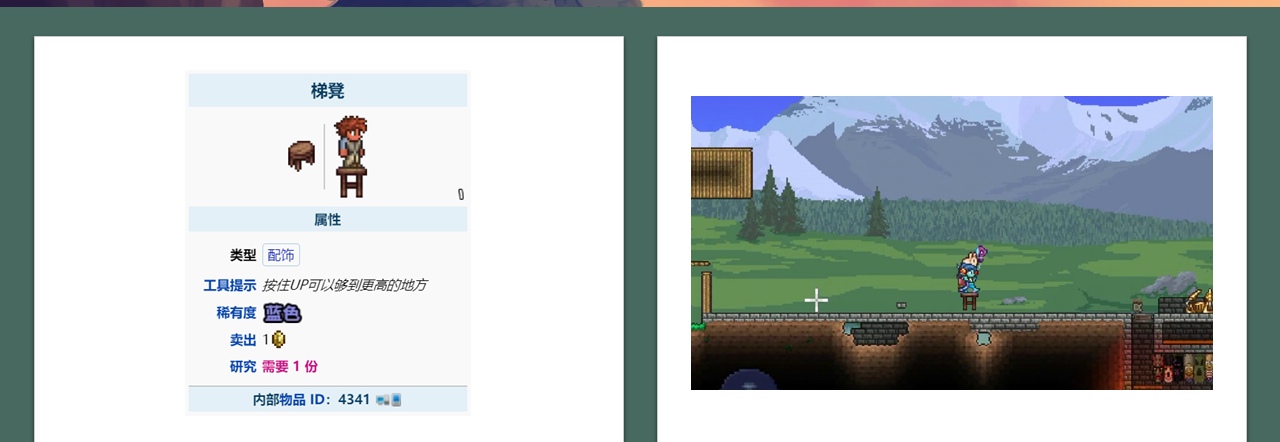 首頁 泰拉瑞亞 問答 泰拉瑞亞梯凳有什麼用? 2022-10-17 《泰拉瑞亞》遊戲中,「step stool」(梯凳)是1.4版本中新增的物品,梯凳是一種配飾,裝備時允許玩家按著「上」鍵增加跳躍高度約4格高,它可以在地表的寶箱或是釣魚取得的木匣中被找到。
