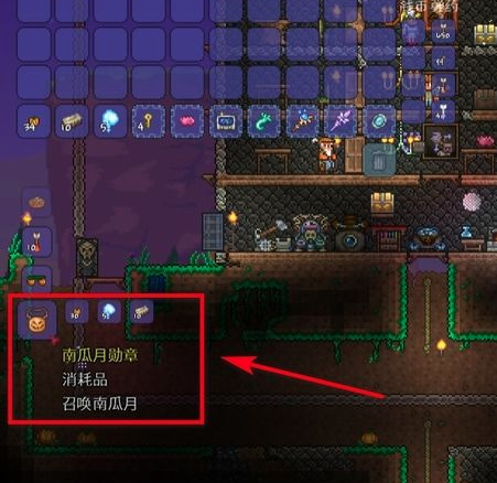 首頁 泰拉瑞亞 問答 泰拉瑞亞南瓜月事件怎麼觸發? 2022-10-17 1、進入遊戲,南瓜月在肉山後世界可以召喚。2、採集南瓜30個;3、打機械新三王,收集神聖錠10個;4、肉山後去地牢,打怪刷靈氣5個;5、靠近山銅砧;6、用南瓜,神聖錠,靈氣合成南瓜月勛章,使用勛章即可召喚南瓜月。