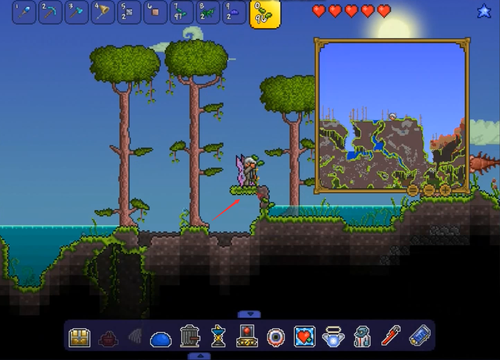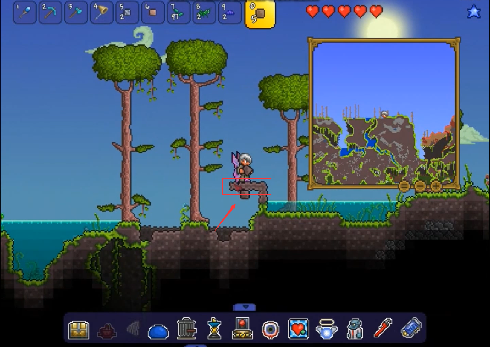 1.泰拉瑞亞製作無限魚餌,首先找到一塊土地,或者自己製造一塊土地,如圖所示