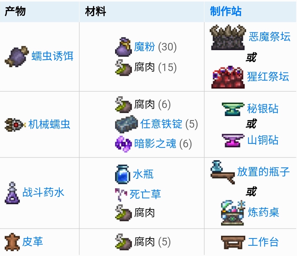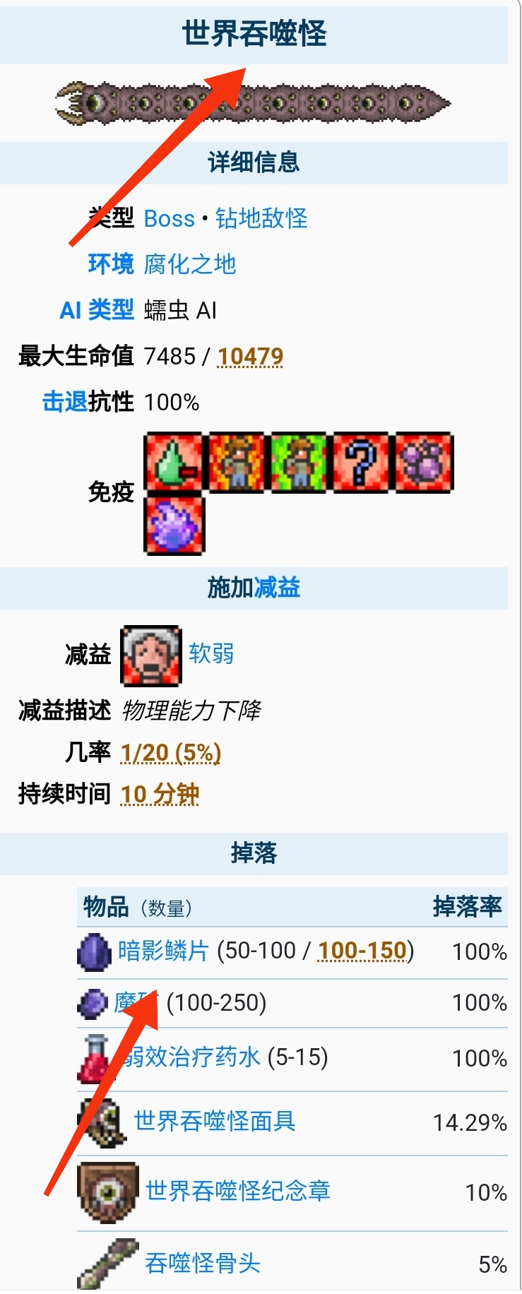 首頁 泰拉瑞亞 問答 泰拉瑞亞暗影鱗片需要多少腐肉? 2022-10-18 在泰拉瑞亞這款遊戲中暗影鱗片是不能通過腐肉來合成的,但是會通過世界吞噬怪掉落,玩家如果想要獲得的話可以去找世界吞噬怪刷,下圖是腐肉能合成的物品
