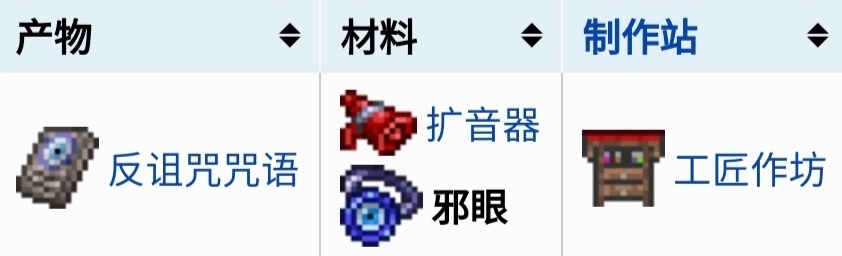 在泰拉瑞亞這款遊戲中,邪眼的主要作用是合成其他物品,在遊戲中玩家可以使用邪眼和擴音器在工匠作坊處製作反詛咒咒語。
