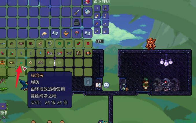 首頁 泰拉瑞亞 問答 泰拉瑞亞血腥之地蔓延了怎麼辦? 2022-10-20 1、點擊蒸汽朋克人打開專屬商店。2、在蒸汽朋克商店購買綠色溶液。3、在血腥之地選中背包中的環境改造器。4、對准血腥之地噴灑綠溶液凈化環境。