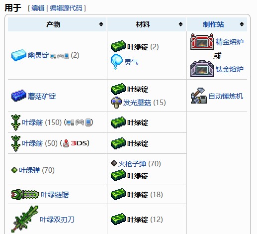 葉綠錠在精金熔爐或鈦金熔爐中合成,詳解: