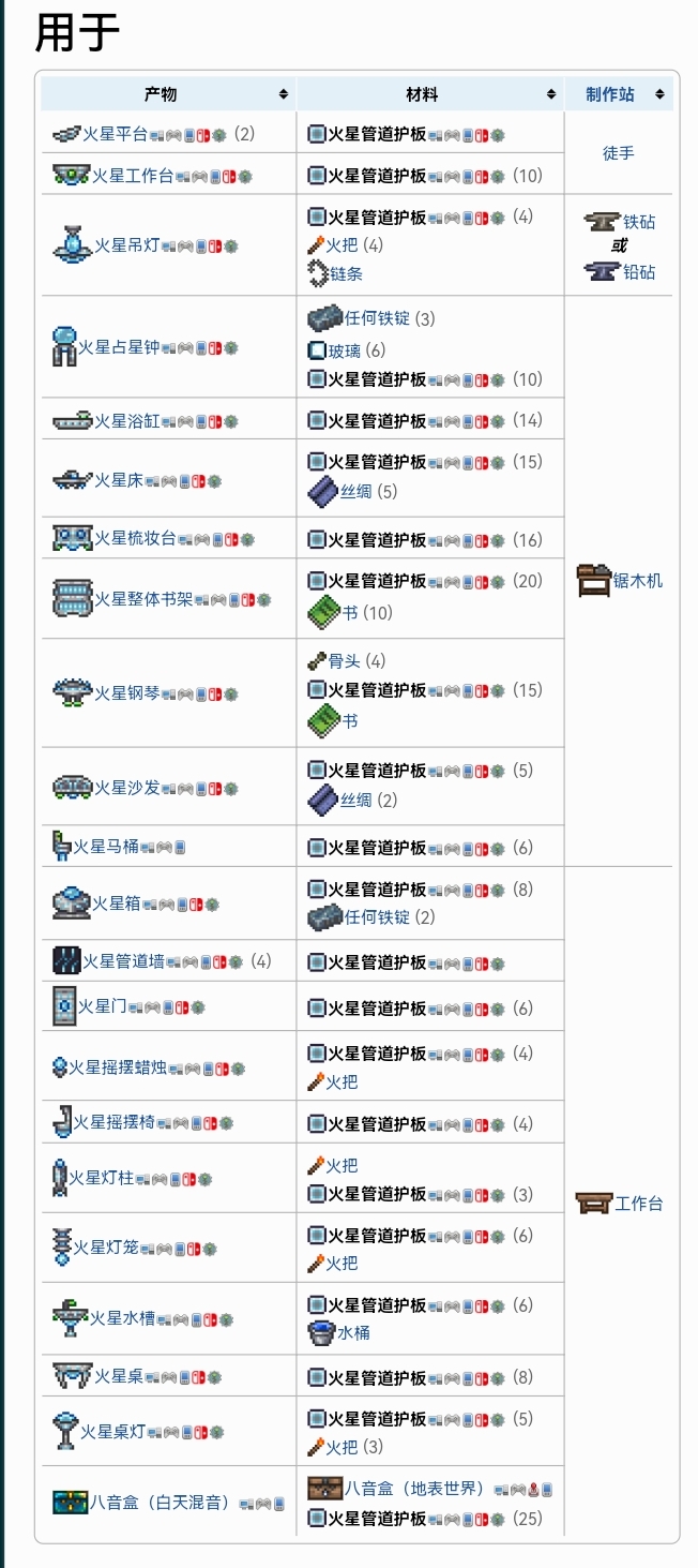 首頁 泰拉瑞亞 問答 泰拉瑞亞火星管道鍍層有什麼用? 2022-10-23 火星管道鍍層是用來合成傢具類物品的,例如說平台還有床,椅子,桌子,工作台這一類的都可以合成。火星管道鍍層是在火星人暴亂事件當中獲得的,大多數敵怪都會掉落部分火星管道鍍層。