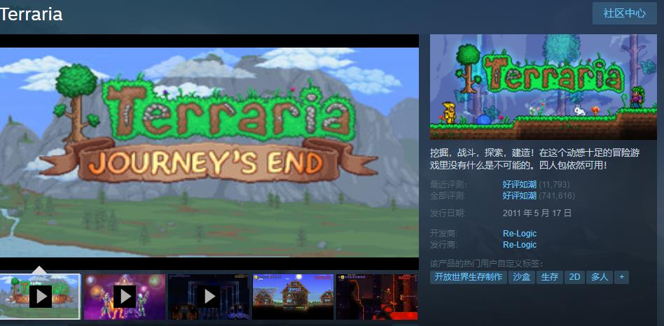 1、泰拉瑞亞的端游版本在Steam上有售。
