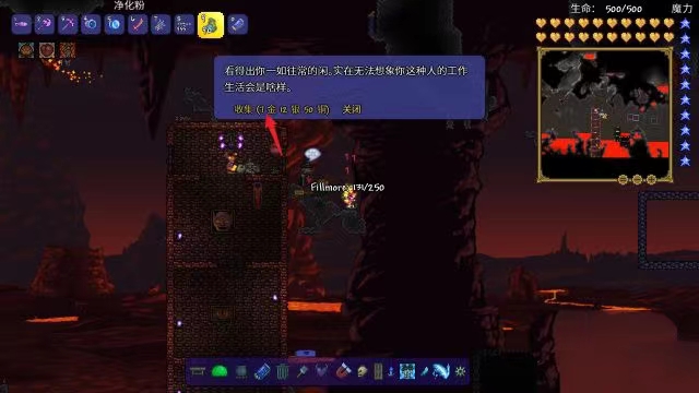 首頁 泰拉瑞亞 問答 泰拉瑞亞稅收官入住教程是什麼? 2022-10-23 稅收官入住教程介紹:1、首先挖掘進入地獄。2、找到在地獄徘徊的痛苦亡魂。3、拿出凈化粉,對准痛苦亡魂使用。4、痛苦亡魂會變成稅收官,繼而入住空房間。