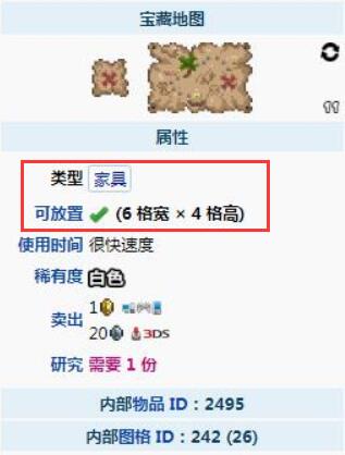 首頁 泰拉瑞亞 問答 泰拉瑞亞寶藏地圖有什麼用? 2022-10-24 泰拉瑞亞寶藏地圖屬於一個裝飾類的掛件物品,只有裝飾作用。隨機作為漁夫釣魚任務的獎勵獲得,但是獲得率只有1%。玩家要注意的是寶藏地圖和海盜地圖並不相同,通過小地圖檢視時,它被稱為繪畫作品。