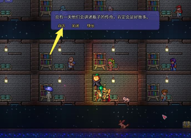 1、首先我們進入游戲,找到商人npc,點擊對話。