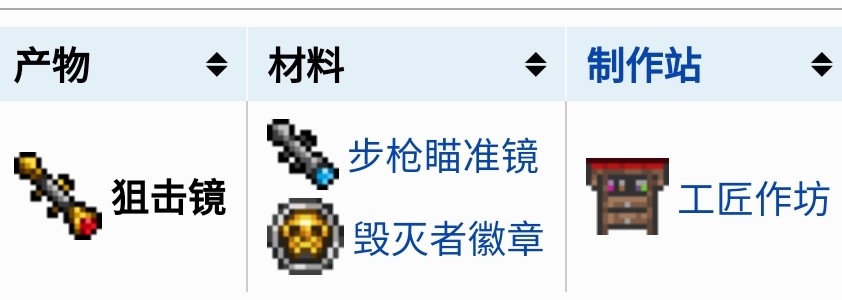 在泰拉瑞亞這款遊戲中,狙擊鏡是一種困難模式、石巨人後的配飾,玩家可以使用步槍瞄準鏡和毀滅者徽章在工匠作坊處合成。