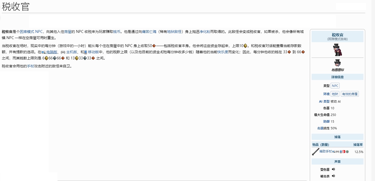 首頁 泰拉瑞亞 問答 泰拉瑞亞稅收管有什麼用? 2022-10-26 在遊戲泰拉瑞亞中,稅收官是個困難模式NPC,向其他入住房屋的 NPC 收稅來為玩家賺取錢幣。玩家和稅收官對話能查看當前存款數額,並有提款的選項。