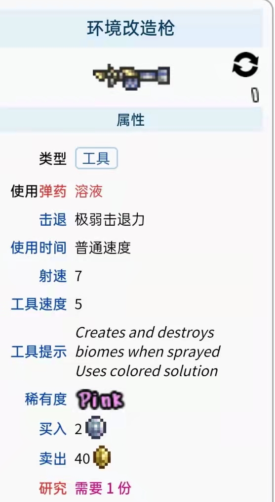 首頁 泰拉瑞亞 問答 泰拉瑞亞環境改造槍怎麼做? 2022-10-26 環境改造槍介紹:在遊戲《泰拉瑞亞》中,環境改造槍無法進行製作,需要在蒸汽朋克NPC花費2銀幣進行購買,作為一種困難模式的工具,可以用來創建或摧毀生物群落。