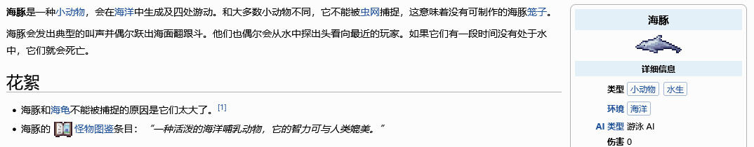 首頁 泰拉瑞亞 問答 泰拉瑞亞海豚怎麼捕獲? 2022-10-27 海豚是不可以捕獲的,海豚在海洋當中生成屬於小動物,但是海豚和海龜一樣是不能捕獲的,玩家並沒有辦法使用蟲網去捉住海豚,官方給出的原因是這個海豚太大了,蟲網捉不住。