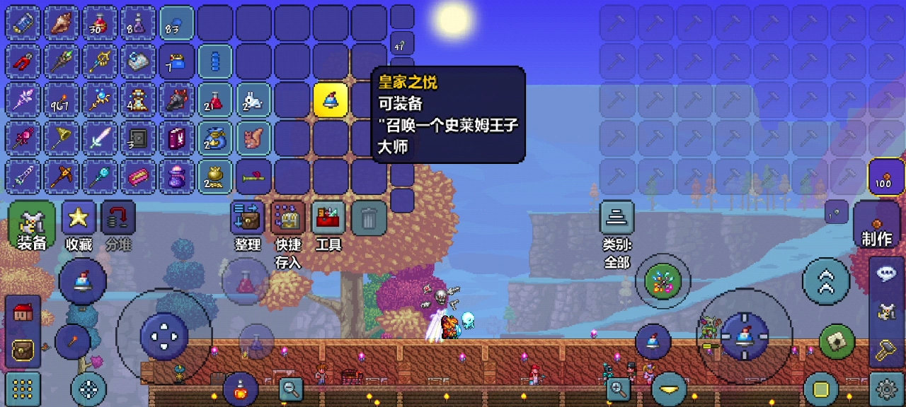 首頁 泰拉瑞亞 問答 泰拉瑞亞皇家喜悅有什麼用? 2022-10-31 1.皇家喜悅的作用是裝備後可以召喚出史萊姆王子,它是一個寵物起裝飾性作用,是沒有攻擊力的。2.裝備之後人物的右邊就是史萊姆王子的樣子。