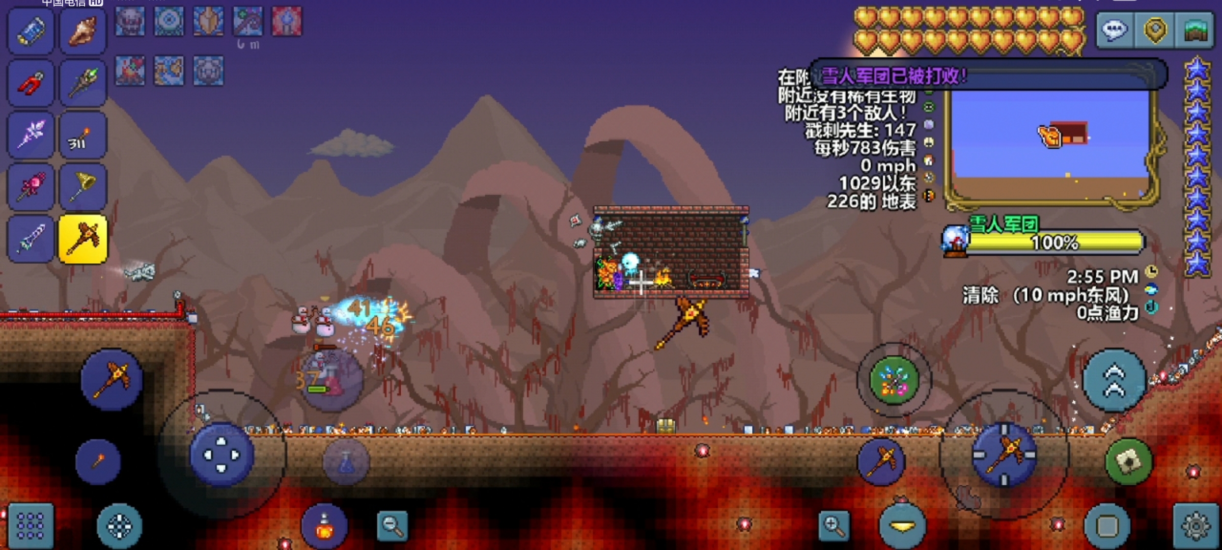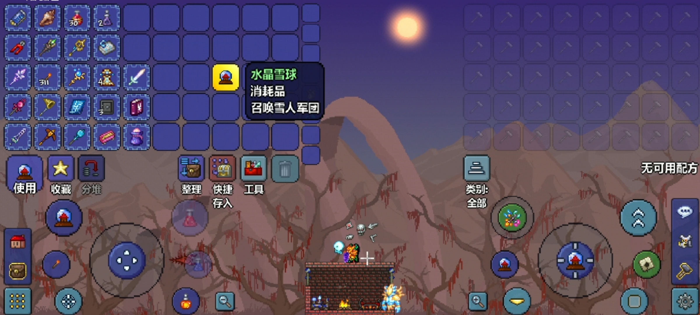 首頁 泰拉瑞亞 問答 泰拉瑞亞雪人軍團要在雪地召喚嗎? 2022-11-01 1.雪人軍團是不需要在雪地召喚的,雪人軍團可以用水晶雪球在任何世界,任何時間任何地點進行召喚。我們隨便來到一個區域,點擊物品欄里的水晶雪球。2.點擊使用之後,我們就發現雪人軍團已經召喚了。