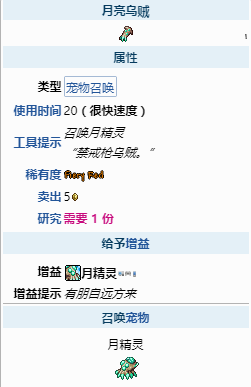 在泰拉瑞亞遊戲中,玩家可通過擊敗大師模式的月亮領主,來獲得寵物召喚物品月亮烏賊。使用月亮烏賊,能夠召喚出寵物月精靈跟隨玩家。