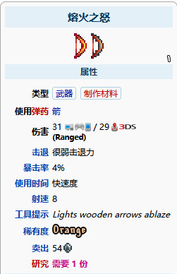 首頁 泰拉瑞亞 問答 泰拉瑞亞蜂膝弓和熔火之怒哪個好? 2022-11-02 1.這兩把弓的偏向不一樣,選擇的話熔火之怒會更好一些,熔火之怒的攻擊力更高,配上炎獄箭提高單次傷害和擊退能力。2.蜂膝弓射出來的箭都會變成蜜蜂,這把弓更偏向於追蹤敵人,射出來的蜜蜂是能夠自動找敵人攻擊的。