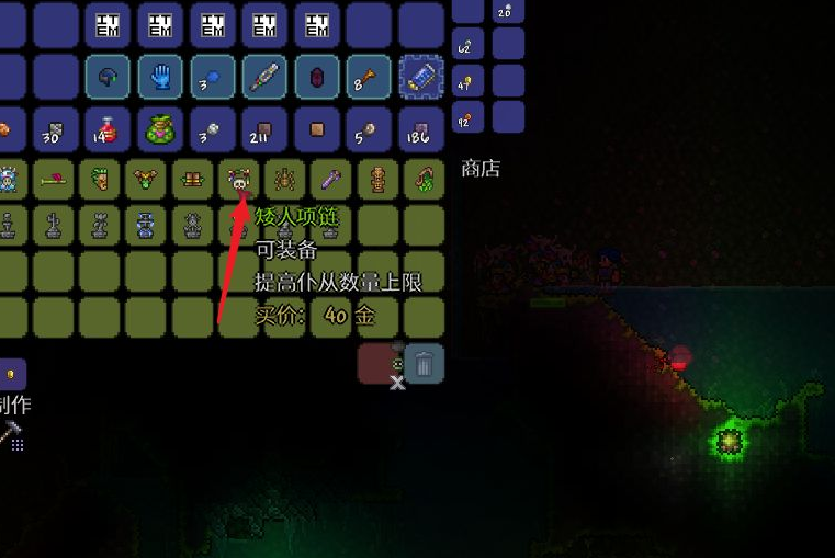 首頁 泰拉瑞亞 問答 泰拉瑞亞什麼飾品加召喚物? 2022-11-02 1、矮人項鏈可以增加召喚物,首先我們在困難模式下擊敗世界花。2、夜間在叢林地形找到巫醫NPC,和他對話。3、在對話列表點擊商店按鈕。4、購買矮人項鏈放入飾品欄,即可增加召喚物數量。