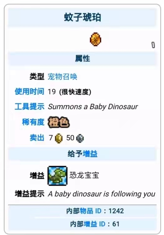 首頁 泰拉瑞亞 問答 泰拉瑞亞最稀有的寵物是哪個? 2022-11-03 最稀有的寵物介紹:在遊戲《泰拉瑞亞》中,最稀有的寵物是恐龍寶寶,可以通過在提煉機中提煉泥沙,雪泥或沙漠化石獲得蚊子琥珀進行召喚。 提煉泥沙或雪泥只有0.02%的概率,提煉沙漠化石0.06%的幾率獲得。