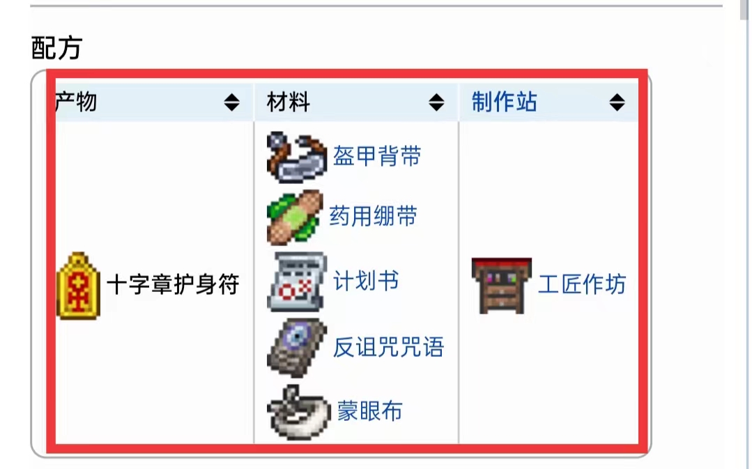 首頁 泰拉瑞亞 問答 泰拉瑞亞聖十字護符怎麼獲得? 2022-11-04 聖十字護符獲得方法:在遊戲《泰拉瑞亞》中,十字章護身符是一種困難模式下的配飾,是由盔甲背帶,藥用綳帶,計劃書,反詛咒咒語,和蒙眼布合成獲得。