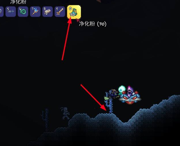 2、然後我們進入腐化之地,選擇凈化粉道具,直接在腐化之地上方使用。如下圖所示: