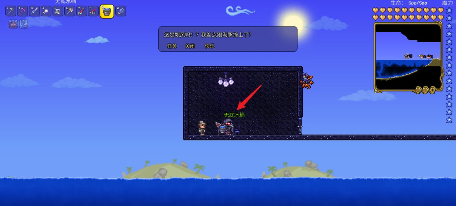 首頁 泰拉瑞亞 問答 泰拉瑞亞怎麼放水? 2022-11-07 泰拉瑞亞放水的方法:1、點擊漁夫聊天面板任務按鈕。2、困難模式下,完成10次任務有概率獲得無底水桶。3、將無底水桶放入熱點欄,點擊選中。4、對準目標位置揮舞水桶,將目標填滿。