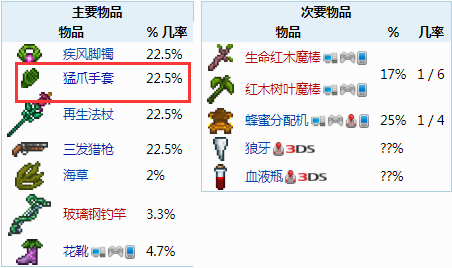首頁 泰拉瑞亞 問答 泰拉瑞亞密林之爪怎麼獲得? 2022-11-08 泰拉瑞亞密林之爪(猛爪手套)可通過開啟叢林神龕和叢林匣常春藤箱獲得,掉落率為22.5%。猛爪手套是一種配飾,能提高12%近戰攻擊速度,並且和所有其他攻擊速度增強都能疊加。