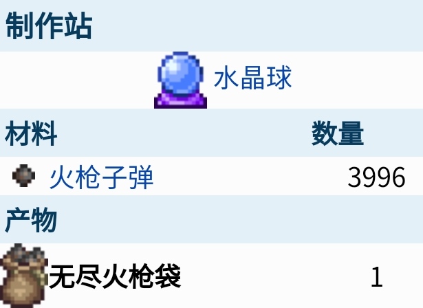 首頁 泰拉瑞亞 問答 泰拉瑞亞無盡火槍袋在哪裡合成? 2022-11-08 在泰拉瑞亞這款游戲中,無盡火槍袋是一種作為彈葯類的物品, 它可以放在玩家物品欄中的彈葯格中,玩家可以使用火槍子彈在水晶球處製作合成。