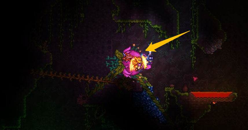 2.刷新三個機械boss後,前往地下叢林打世紀之花。