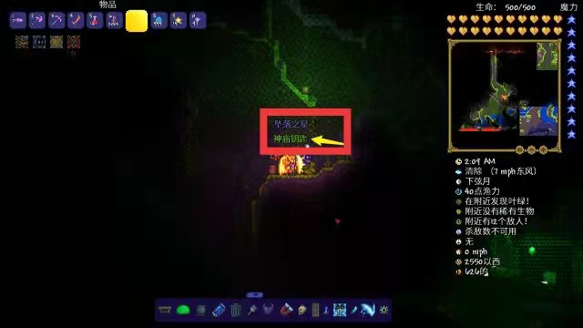 首頁 泰拉瑞亞 問答 泰拉瑞亞神廟怎麼找鑰匙? 2022-11-08 神廟鑰匙獲得方法:在遊戲《泰拉瑞亞》中,分別擊敗肉山和機械三王,然後在叢林環境下殺死世界之花就可以獲得神廟鑰匙,將神廟鑰匙撿起來放入背包,對著神廟大門使用鑰匙,即可進入神廟。