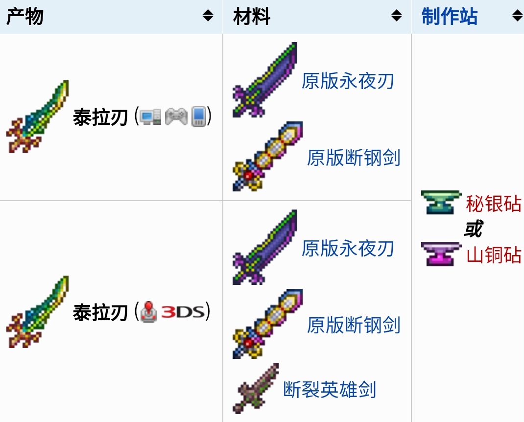 在泰拉瑞亞這款遊戲里,斬水之刃說的是泰拉刃這把武器,這把武器可以通過合成的方式來獲取,具體合成方法以及製作地方可以參見下圖: