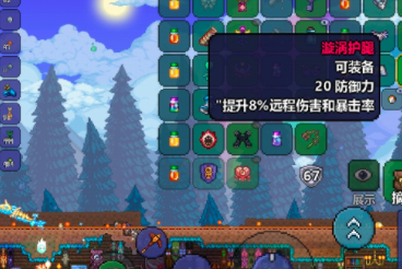 在泰拉瑞亞遊戲中我們同時裝備漩渦頭盔和漩渦板甲和漩渦護腿和得到完整的漩渦套,然後我們雙擊下鍵就可以進行隱身了。
