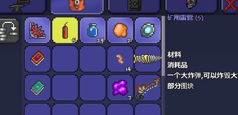 首頁 泰拉瑞亞 問答 泰拉瑞亞神聖手雷為什麼做不了? 2022-11-10 一、首先,與毀滅者進行NPC對話,進入毀滅者商店購買炸藥。二、然後,攜帶空瓶進入水中,製作瓶裝水。三、接著,在攜帶著炸藥和瓶裝水,靠近工作台。四、最後,開啟製作頁面:5個炸藥 5個瓶裝水=神聖手雷。