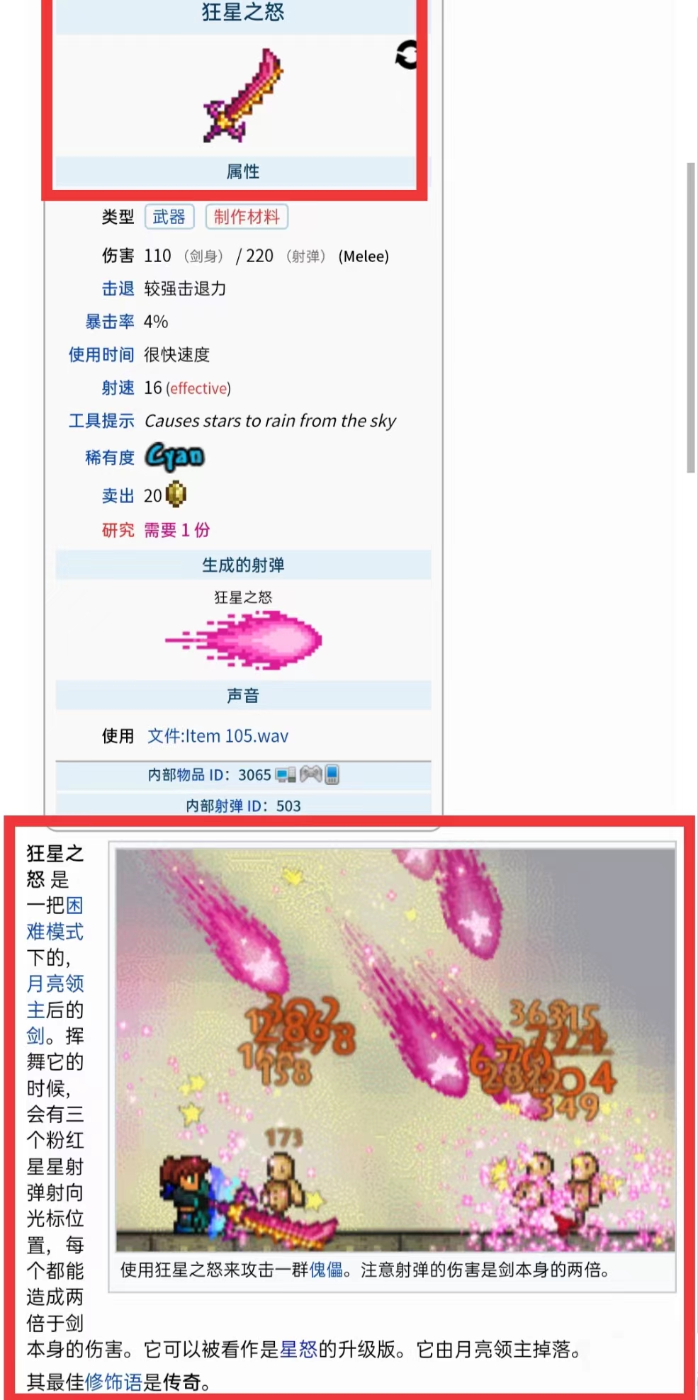 在遊戲《泰拉瑞亞》中,狂星之怒無法製作,玩家擊敗月亮領主會有1/9 (11.11%)的概率掉落,是一把困難模式下的,月亮領主後的劍。揮舞它的時候,會有三個粉紅星星射彈射向游標位置,每個都能造成兩倍於劍本身的傷害,它可以被看作是星怒的升級版。
